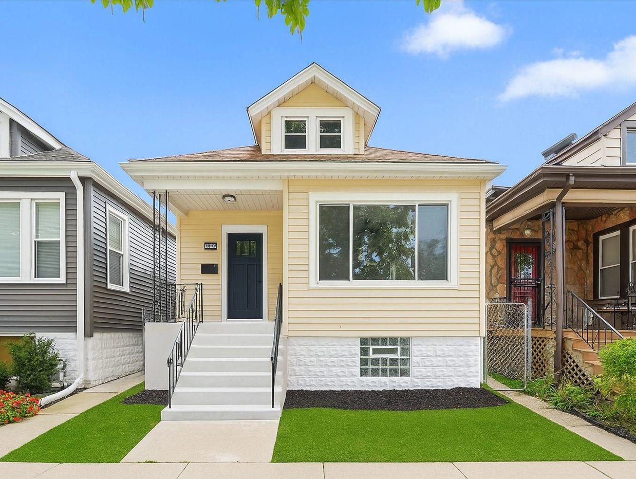 Nestled in Chicago's vibrant Lawn community, this beautifully renovated brick bungalow offers a rare blend of classic charm and modern elegance. With ten spacious rooms, five bedrooms, and two full bathrooms, the home has been thoughtfully reimagined with meticulous attention to detail. From the moment you step inside, you'll be greeted by a fireplace wrapped in custom tile, striking black and gold finishes-LED lighting, ceiling fans, and plumbing fixtures-that lend a bold, contemporary edge. Engineered laminate flooring run throughout the home, complemented by refined crown molding and chair rail accents that add a touch of timeless sophistication. The living room and family room each feature custom decorative accent walls, creating inviting spaces that feel both stylish and personal. At the heart of the home, the large eat-in kitchen boasts 42" white shaker cabinets with custom crown molding, stainless steel appliances, quartz countertops, and a beautifully tiled backsplash-perfect for both everyday meals and entertaining. Downstairs, the fully finished basement expands your living space with two additional oversized bedrooms, a generous family room, a full bathroom, and a dedicated laundry area. Step outside to enjoy a large private yard and a two-car garage, ideal for gatherings or quiet evenings under the stars. With brand-new HVAC, electrical, plumbing, and windows, this home offers peace of mind and turnkey convenience. Located just moments from schools, parks, restaurants, and public transportation, it's perfectly positioned for both comfort and connectivity. All that's left is for you to move in and start enjoying the lifestyle you've been dreaming of.